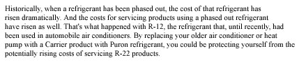 keep in mind that Carrier's Puron-based products offer several homeowner
